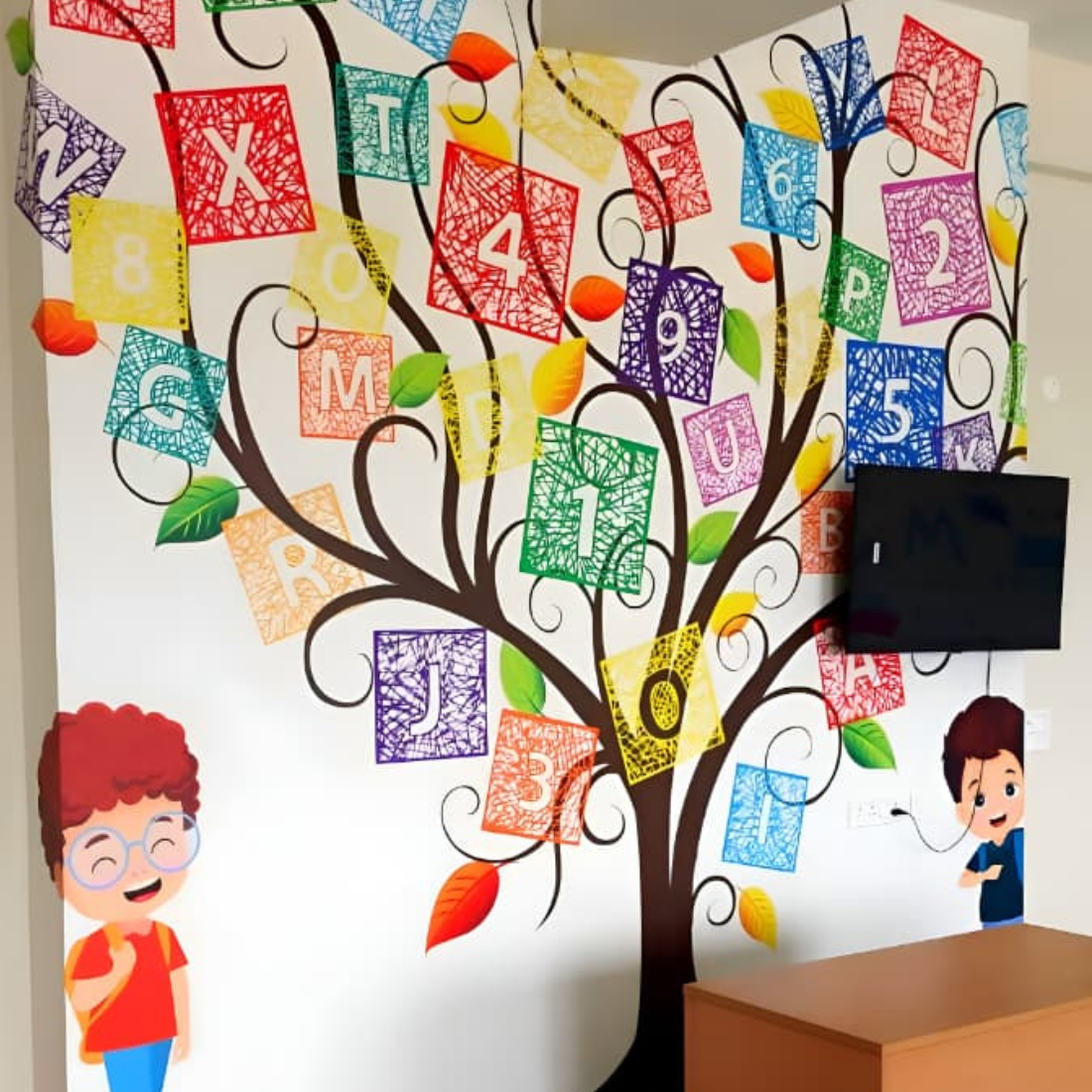 Create a fun, engaging, and learning-rich environment with Educational Classroom Wallpapers, specially designed for Play Schools, Playgroups, LKG and UKG classrooms. These wallpapers help young children learn visually through bright colors, clear images, and age-appropriate content.